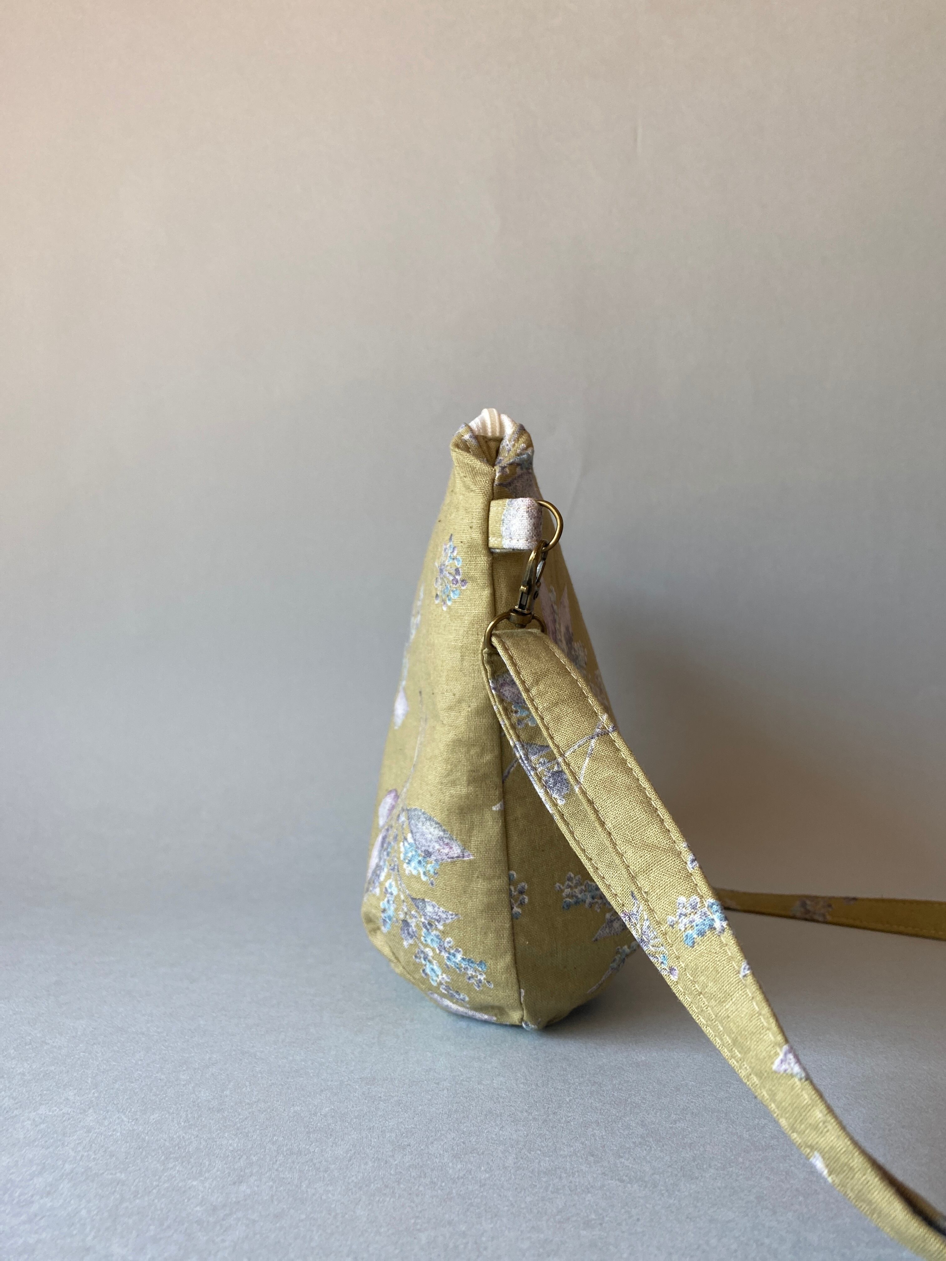 「花柄ショルダーバッグ」は、上品な花柄が特徴のハンドメイドバッグです。淡いグリーンの生地に、紫や白の繊細な花々が描かれており、落ち着いた中にも華やかさを感じさせるデザインが魅力です。コンパクトなサイズ感でありながら、日常使いに便利な収納力を持ち、ジッパー付きで中身をしっかり保護します。ストラップは長さ調節が可能で、肩掛けスタイルに合わせて自由にアレンジできます。カジュアルからフェミニンなコーディネートまで幅広く合わせやすく、どんなシーンでも活躍するアイテムです。手仕事のぬくもりを感じる、特別なバッグをぜひお楽しみください。