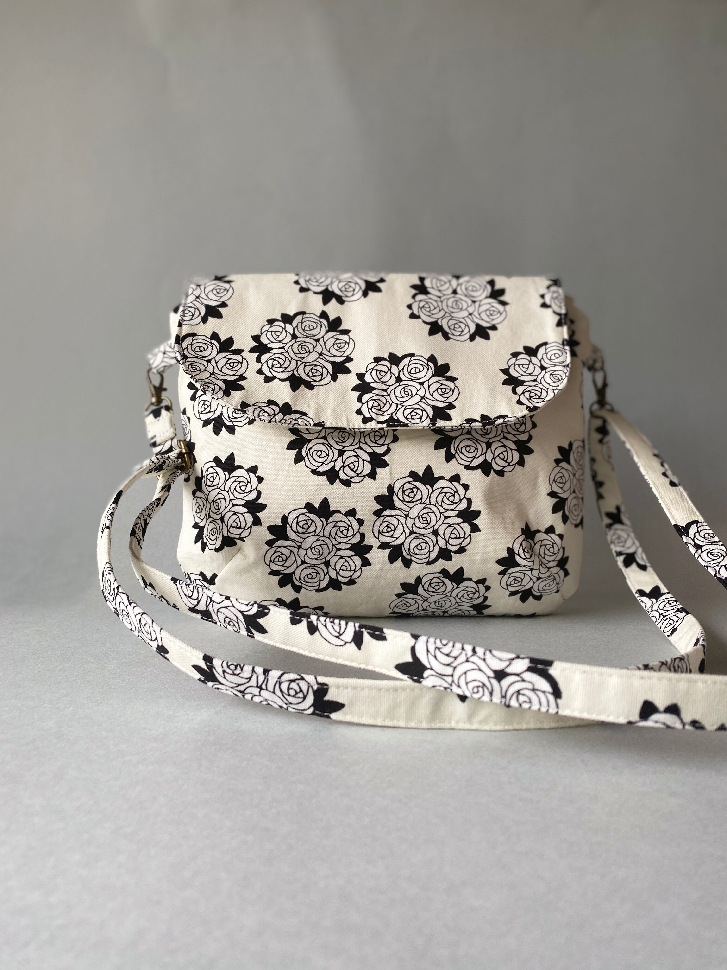 • デザイン:白地に黒いバラが咲き誇るモノクロパターンが、バッグ全体にクラシックなエレガンスをプラス。コンパクトながらも存在感のあるデザインで、カジュアルな装いにも、上品なコーディネートにも自然に馴染みます。